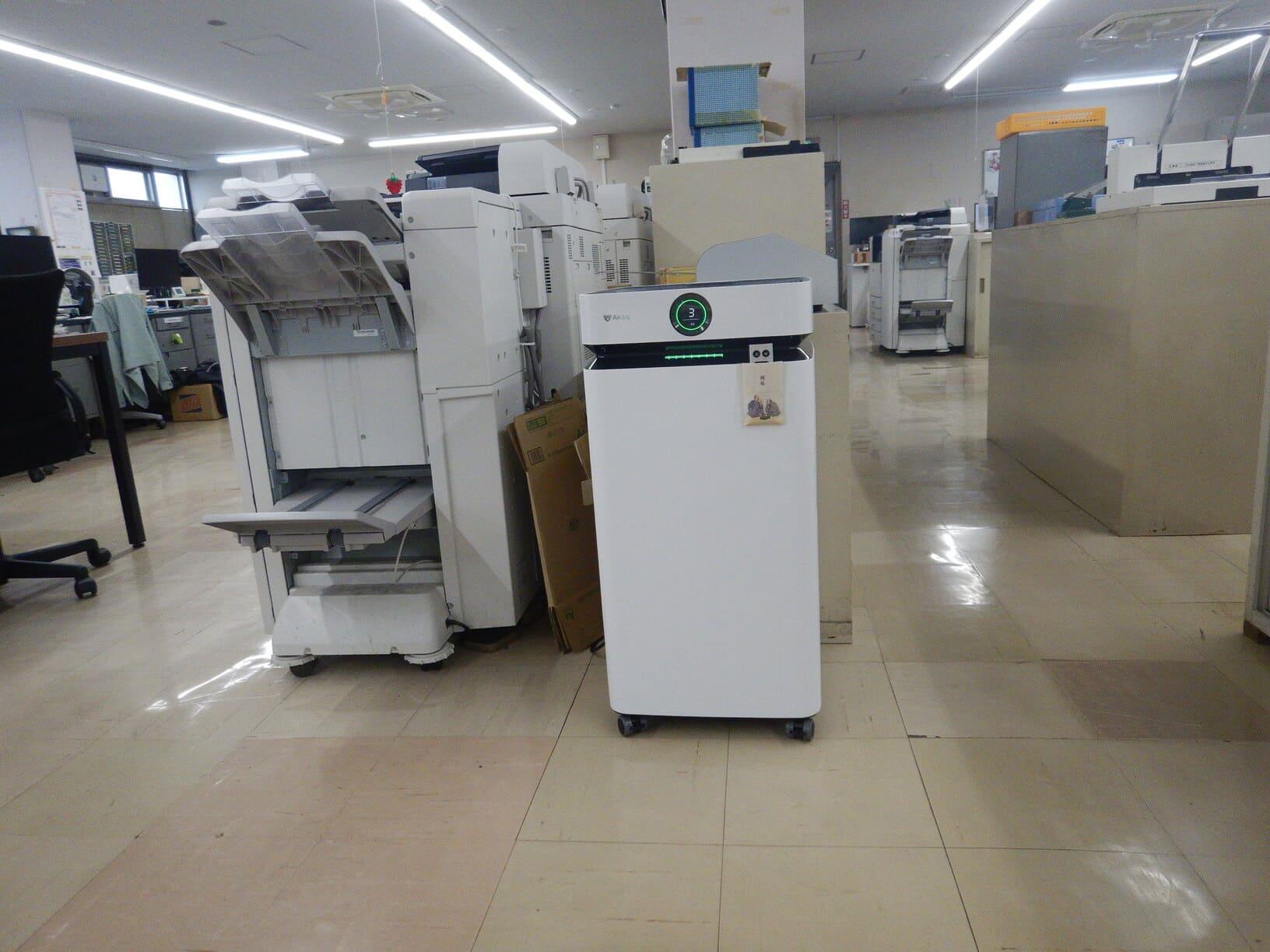 オフィスに「Airdog X5D」を導入。フィルターが洗えるというメンテナンス性の高さや、CO2濃度や空気の清浄度が可視化できる点が決め手となりました。導入後は、静かで存在感がないながらも、安心感につながっているとの声が寄せられています。