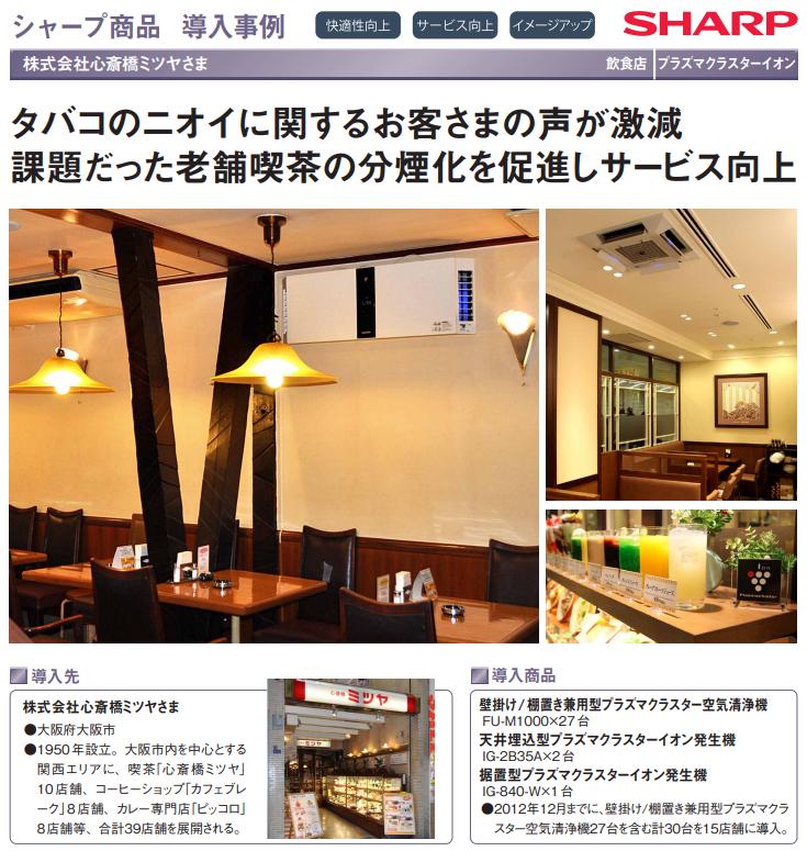 大阪市内で老舗喫茶を展開する心斎橋ミツヤでは、全席喫煙が主流だった背景から、タバコのニオイに関する顧客の声が増加していました。分煙化の必要性が高まる中でも、内装を損なうことなく効果的に空気環境を改善する手段が求められていました。